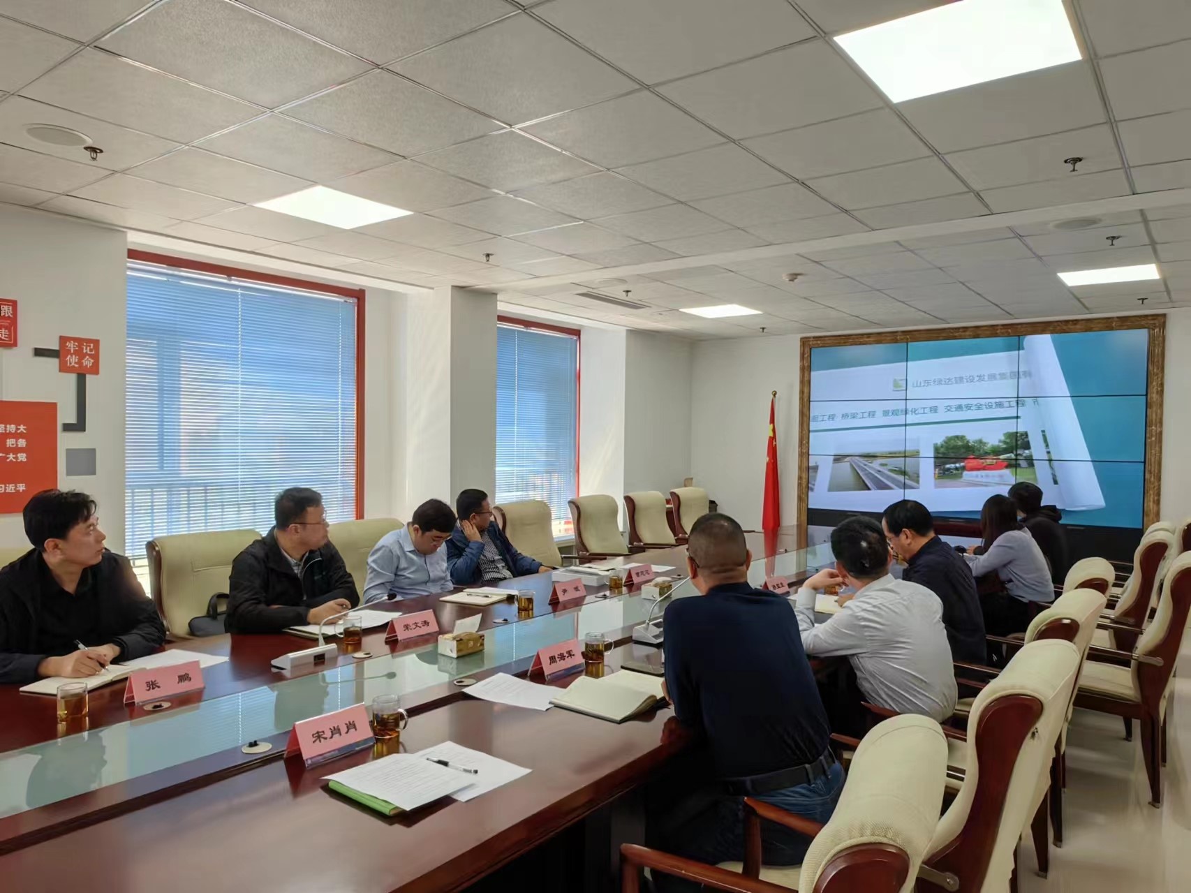 4月16日上午,山東交通職業學院公路與建筑系負責人榮文濤帶隊就雙方產教融合進一步創新合作方式、拓寬合作領域來我公司交流座談。學院公路與建筑系負責人榮文濤、實訓中心主任尹斌、教授張鵬、博士曹芯芯、綠達公司總經理劉湘江、總經理助理周海軍、養護工程分公司經理孫寶生以及技術中心相關同志參加座談。